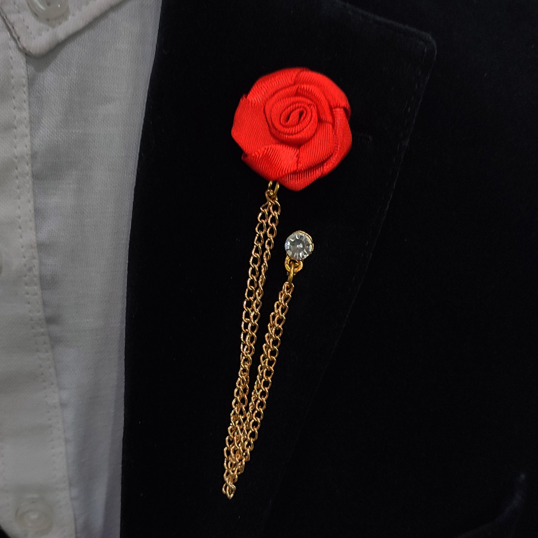 Red Rose with chain Lapel Pin